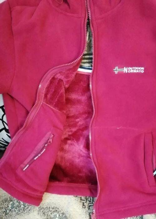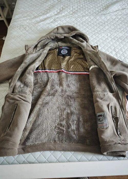 Zaprojektowana na polską jesień i zimę: wewnątrz gęsty polar, na zewnątrz tkanina, która osłania przed wiatrem i drobnym deszczem.